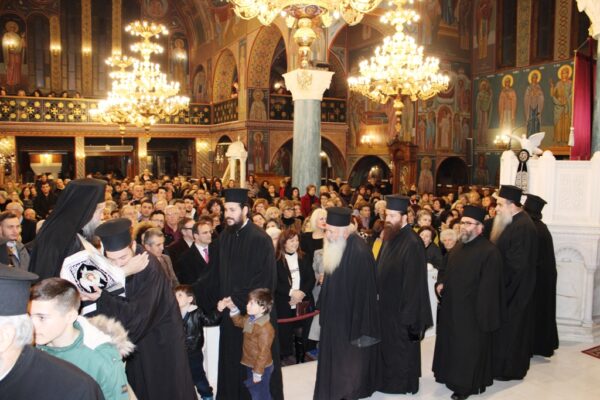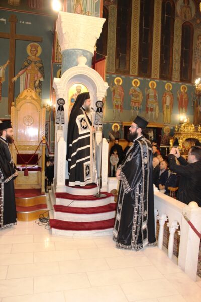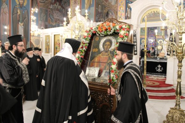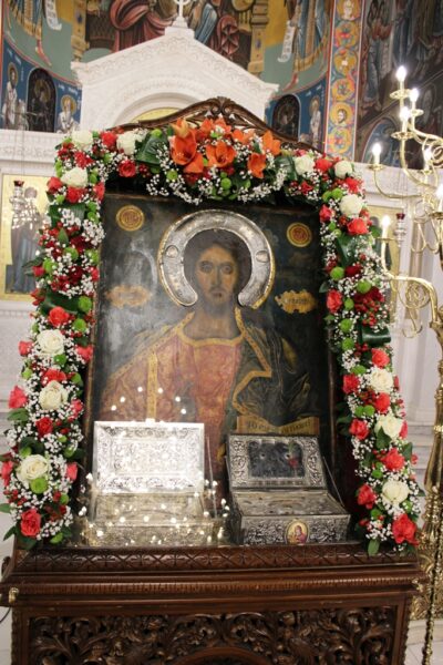 Νωρίς το απόγευμα, είχε τοποθετηθεί στο κέντρο του Ιερού Μητροπολιτικού Ναού, η θαυματουργός εικόνα του Χριστού Παντοκράτορος, προερχομένη από το χωρίο των Στεφανινών και πολυάριθμα τεμάχια ιερών λειψάνων, προς προσκύνηση και πνευματική ενίσχυση των πιστών.