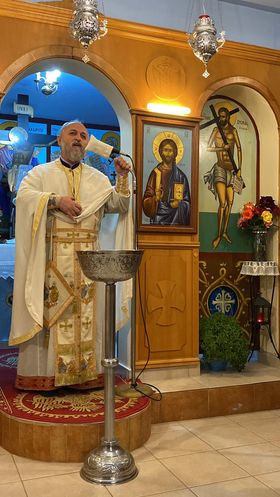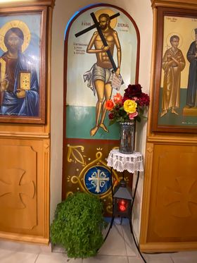 Σε αυτό το παρεκκλήσι σήμερα τέλεσε την πανηγυρική Θεία Λειτουργία ο Αιδεσιμολογιότατος Πρωτοπρεσβύτερος Νικόλαος Αργυρίου, που κήρυξε και τον Θείο Λόγο, μιλώντας για τον ευγνώμονα ληστή.