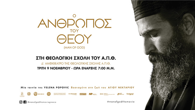 Στο πλαίσιο του μαθήματος «Θεολογία και Κινηματογράφος» η Κοσμητεία της Θεολογικής Σχολής του Αριστοτελείου Πανεπιστημίου Θεσσαλονίκης και το Ινστιτούτο «Άγιος Μάξιμος ο Γραικός» διοργανώνουν σήμερα από κοινού εκδήλωση αφιερωμένη στην ταινία «Ο άνθρωπος του Θεού» της Yelena Popovic κατά την οποία θα προβληθεί και η ταινία.