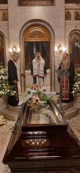 Η Εξόδιος Ακολουθία θα ψαλεί, προεξάρχοντος του Σεβασμιωτάτου Μητροπολίτου Ύδρας, Σπετσών και Αιγίνης κ. Εφραίμ, ο οποίος θα μεταφέρει και τις ευχές του Μακαριωτάτου Αρχιεπισκόπου Αθηνών και πάσης Ελλάδος κ.κ. Ιερωνύμου, ενώ η ταφή θα πραγματοποιηθεί στην ιδιαίτερη πατρίδα του από στενό οικογενειακό κύκλο.