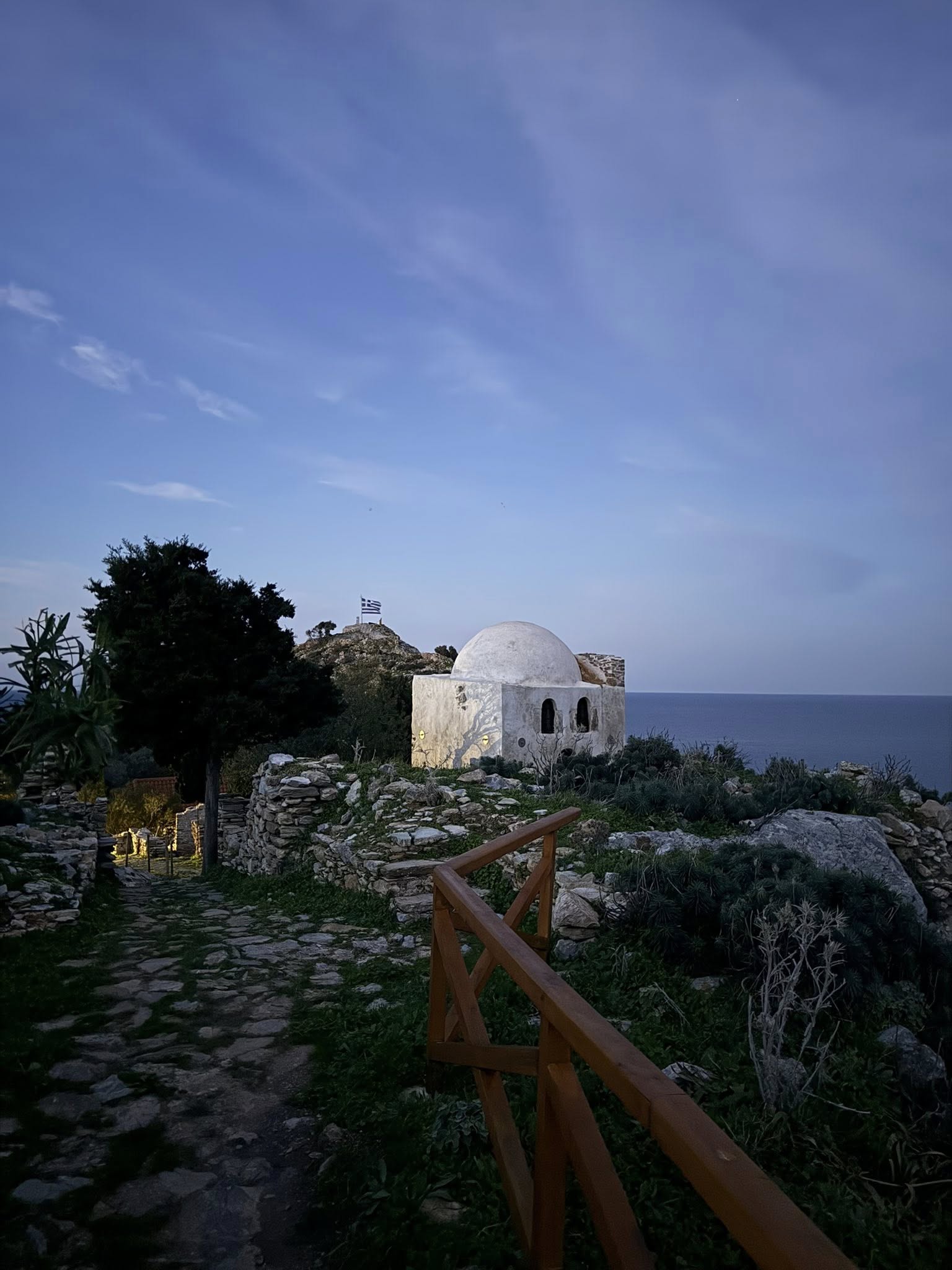 Κατά την ιερά αγρυπνία που τελέστηκε το βράδυ της 30ης Δεκεμβρίου 2025, με αφορμή την απόδοση της Δεσποτικής εορτής της Γεννήσεως του Χριστού, αρκετοί κάτοικοι και επισκέπτες της νήσου των Βορείων Σποράδων ανηφόρησαν στο Κάστρο όπου με ευλάβεια συμμετείχαν στις ιερές ακολουθίες και το μυστήριο της Θείας Ευχαριστίας.