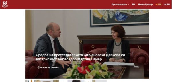 Όπως επισήμαναν μέσα ενημέρωσης των Σκοπίων, στην αρχική σελίδα της επίσημης ιστοσελίδας της Προέδρου της Δημοκρατίας της Βόρειας Μακεδονίας, δίπλα στο οικόσημο δεν αναγράφεται το όνομα του θεσμού δηλαδή, «Πρόεδρος της Δημοκρατίας της Βόρειας Μακεδονίας».