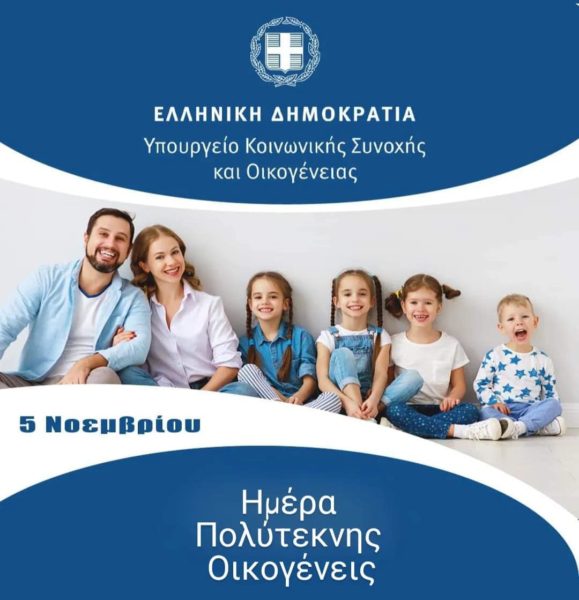 “Ο εορτασμός της Ημέρας της Πολύτεκνης Οικογένειας, την πρώτη Κυριακή του Νοεμβρίου, υπενθυμίζει το χρέος της Πολιτείας για τη στήριξη της πολύτεκνης οικογένειας η οποία αποτελεί θεμέλιο της κοινωνίας μας και εχέγγυο για την συνέχεια της εξέλιξης και της προόδου”. Αυτό τόνισε στο μήνυμά της με αφορμή την Ημέρα της Πολύτεκνης Οικογένειας η Υπουργός Κοινωνικής Συνοχής και Οικογένειας, Σοφία Ζαχαράκη.