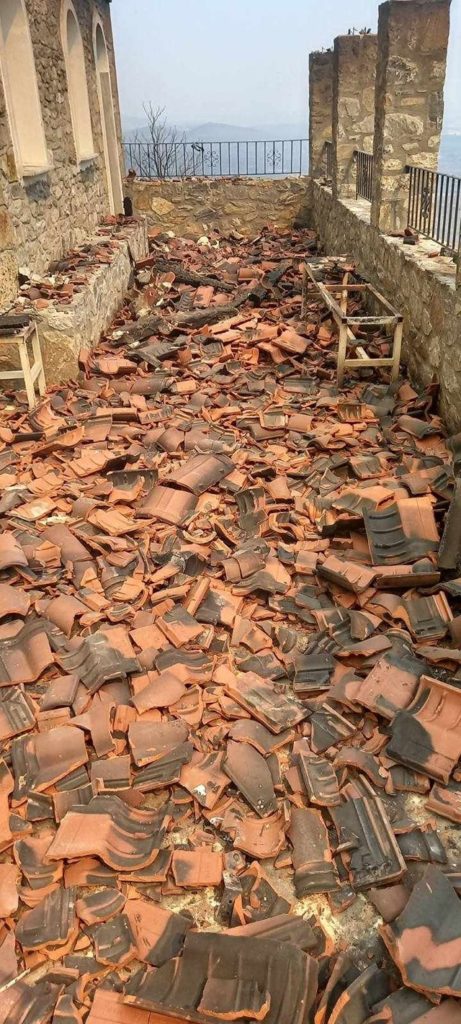 Η πύρινη λαίλαπα προκάλεσε ολική καταστροφή στο εσωτερικό και το εξωτερικού. Από την πύρινη λαίλαπα δεν γλίτωσε ούτε ο Εσταυρωμένος.