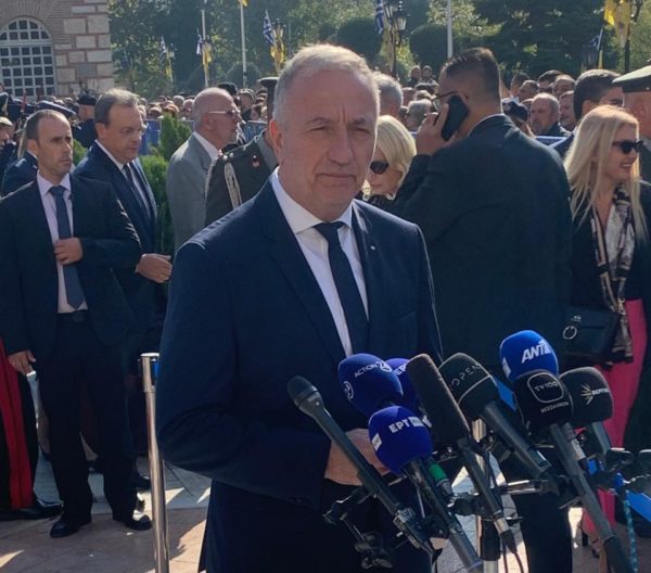 Νωρίτερα, ο κ. Καλαφάτης είχε παραστεί στην επίσημη έπαρση της ελληνικής σημαίας στο μνημείο Λευκού Πύργου.
