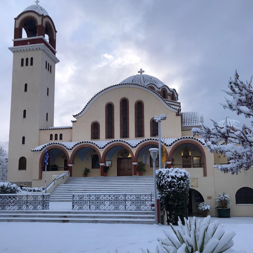 Λίγο μετά τις 9:15 η χιονόπτωση σταμάτησε ωστόσο η ποσότητα του χιονιού δίνει μια ιδιαίτερη ομορφιά καθώς έχει καλύψει πάρκα και πλατείες ενώ στα λευκά έχει ντύσει και ναούς, όπως φαίνεται στην φωτογραφία από τον Ιερό Ναό Αγίου Γεωργίου Παπάγου.