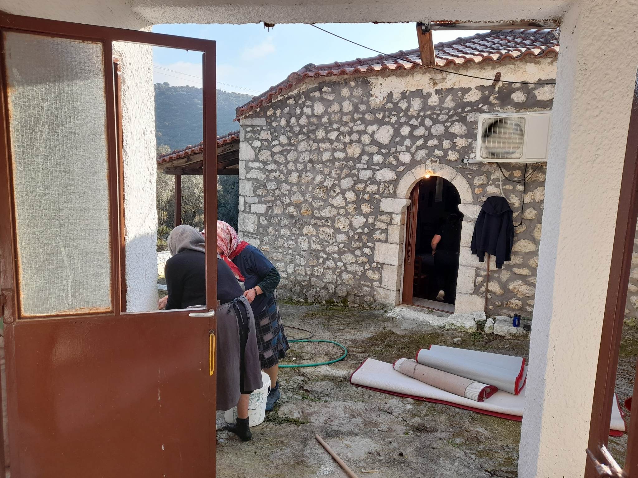 Στενό Πογωνιάς: Οι γυναίκες του χωριού ασπρίζουν την εκκλησία για το Πάσχα (ΦΩΤΟ)