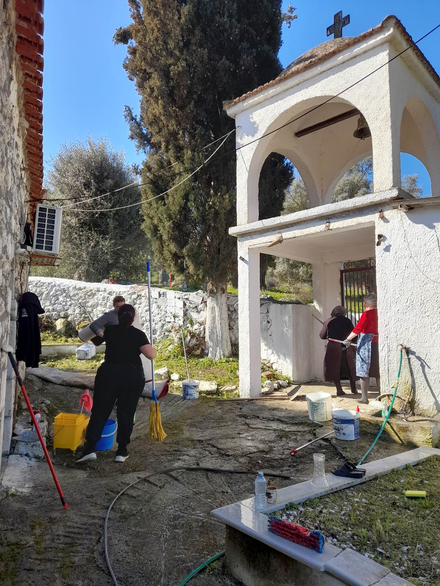 Ξεκίνησαν με τον καθαρισμό της εκκλησίας του Αγίου Αθανασίου και συνέχισαν με το άσπρισμα του περιβάλλοντος χώρου με ασβέστη.