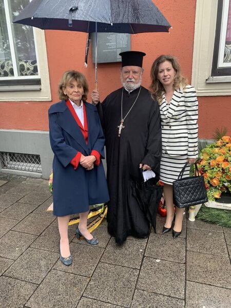 Στην κατάθεση των στεφάνων παρέστησαν επίσης ο εκπρόσωπος της Ιεράς Μητροπόλεως Γερμανίας, Πρωτοπρεσβύτερος Απόστολος Μαλαμούσης, η Γενική Πρόξενος της Ελλάδος στο Μόναχο κ. Παναγιώτα Κωνσταντινοπούλου, η συντονίστρια της διαρκούς επιτροπής για την αναγνώριση της Γενοκτονίας της ΟΣΕΠΕ κ. Αναστασία Ντικ και άλλοι εκπρόσωποι της κοινωνίας του Μονάχου, μεταξύ αυτών και η Πρόεδρος της Ισραηλιτικής Κοινότητας Μονάχου κ. Charlotte Knobloch.