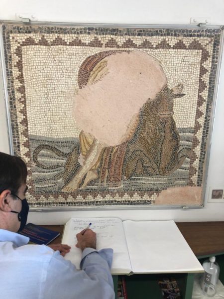 Ο αντιπροέδρος της Ευρωπαϊκής Επιτροπής επισκέφτηκε στη συνέχεια το Αχαιολογικό Μουσείο Αμφιπόλεως, όπου ξεναγήθηκε, μαζί με την υπουργό και την υφυπουργό, από την Προϊσταμένη Εφορείας Αρχαιοτήτων Σερρών, Δήμητρα Μαλαμίδου. Ο κ. Σχοινάς έδειξε ιδιαίτερο ενδιαφέρον για την κεφαλή Σφίγγας, ένα από τα πλέον χαρακτηριστικά ευρήματα του Τύμβου Καστά, το οποίο από τον Αύγουστο του 2019 έχει μεταφερθεί στο Μουσείο. Δεσμεύτηκε μάλιστα ότι το επόμενο καλοκαίρι θα επισκεφτεί την περιοχή με την οικογένειά του. Στο βιβλίο εντυπώσεων, το οποίο βρίσκεται κάτω από ένα ψηφιδωτό που απεικονίζει την «Αρπαγή της Ευρώπης» και το οποίο βρέθηκε στο δάπεδο ενός ρωμαϊκού σπιτιού, ο κ. Σχοινάς έγραψε μεταξύ άλλων ότι “ η Ευρώπη στηρίζει την πολιτιστική μας κληρονομιά”.