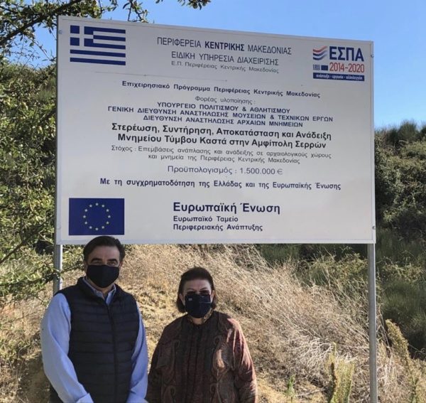 Τη βεβαιότητά του ότι τα έργα στερέωσης και αποκατάστασης του μνημειακού συνόλου της Αμφίπολης θα συνεχίσουν να χρηματοδοτούνται από την Ευρωπαϊκή Ένωση και θα ενταχθούν στο νέο ΕΣΠΑ, εξέφρασε μιλώντας έξω από τον Τύμβο Καστά, το μεσημέρι ο αντιπρόεδρος της Ευρωπαϊκής Επιτροπής Μαργαρίτης Σχοινάς. Ο κ. Σχοινάς επισκέφτηκε την Αμφίπολη, συνοδευόμενος από την υπουργό Πολιτισμού Λίνα Μενδώνη, τη βουλευτή Σερρών και υφυπουργό Αλιευτικής Πολιτικής, Φωτεινή Αραμπατζή και τον αντιπεριφερειάρχη Σερρών Παναγιώτη Σπυρόπουλο.