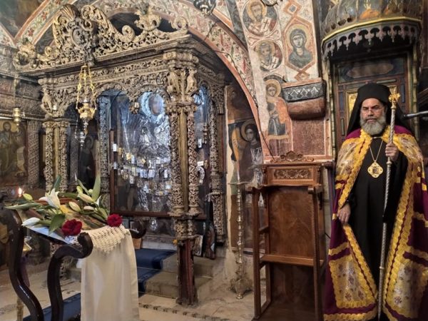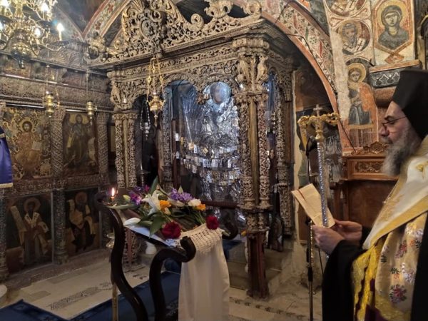Η Γ΄ Στάση των Χαιρετισμών της Υπεραγίας Θεοτόκου στην Ι. Μονή Ταξιάρχου Μιχαήλ του Ρουκουνιώτου Σύμης, την εσπέρα της Παρασκευής 3 Απριλίου υπό του Σεβασμιωτάτου Μητροπολίτου κ. Χρυσοστόμου, από όπου αλιεύουμε το ως άνω φωτογραφικό στιγμιότυπο. Η ατμόσφαιρα πυκνή, κατανυκτική, χειροπιαστή.