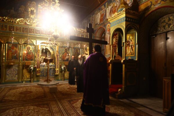 Η Ακολουθία των Αγίων Παθών στο Βατοπαιδινό Μετόχι του Αγίου Νικολάου στο Πόρτο Λάγος του Νομού Ξάνθης τελέσθηκε το απόγευμα της Πέμπτης με τους λίγους Μοναχούς να βρίσκονται μέσα στον Ιερό Ναό του Αγίου Νικολάου.