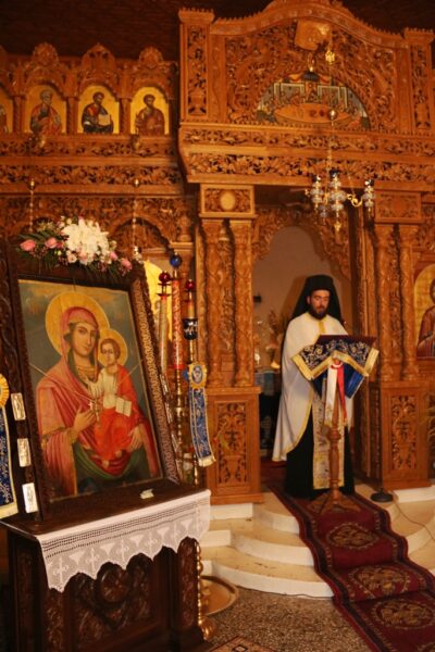 Των ιερών ακολουθιών, τόσο το εσπέρας της παραμονής όσο και το πρωί της κυριωνύμου ημέρας της εορτής, προέστη ο οικείος Επίσκοπος, Σεβ. Μητροπολίτης Διδυμοτείχου, Ορεστιάδος και Σουφλίου κ. Δ α μ α σ κ η ν ό ς, πλαισιούμενος από τον παρεπιδημούντα Ηγούμενο της Ιεράς Πατριαρχικής Μονής Αγίου Γεωργίου Παλαιού Καΐρου Αρχιμ. Δαμασκηνό, ο οποίος και μετέφερε τις ευχές και την ευλογία της Α.Θ.Μ. του Πάπα και Πατριάρχου Αλεξανδρείας και πάσης Αφρικής κ. Θεοδώρου, και από τον Ηγούμενο της Μονής Δαδιάς Αρχιμ. Ελπιδοφόρο.
