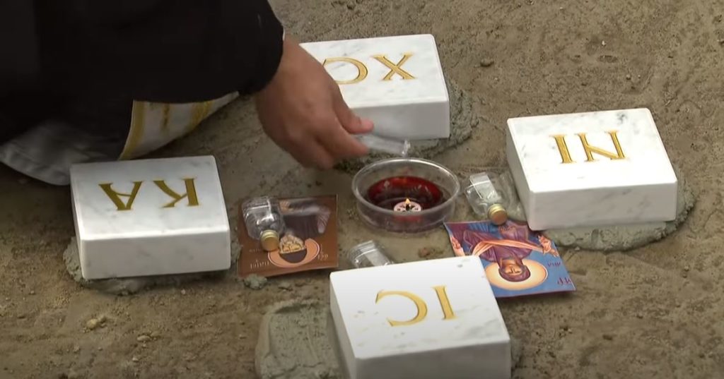 Τα διάφορα τμήματα του Λίθου τοποθετήθησαν υπό του Σεβασμιωτάτου Μητροπολίτου, του Περιφερειάρχου του Burgenland κ. Hans Peter Doskozil, του ρωμαιοκαθολικού Επισκόπου του Eisenstadt κ. Ägidius Zsifkovics, του τοπικού Δημάρχου κ. Andreas Sattler και του Καθηγουμένου της Ιεράς μας Μονής Αρχιμανδρίτου Παισίου Jung.
