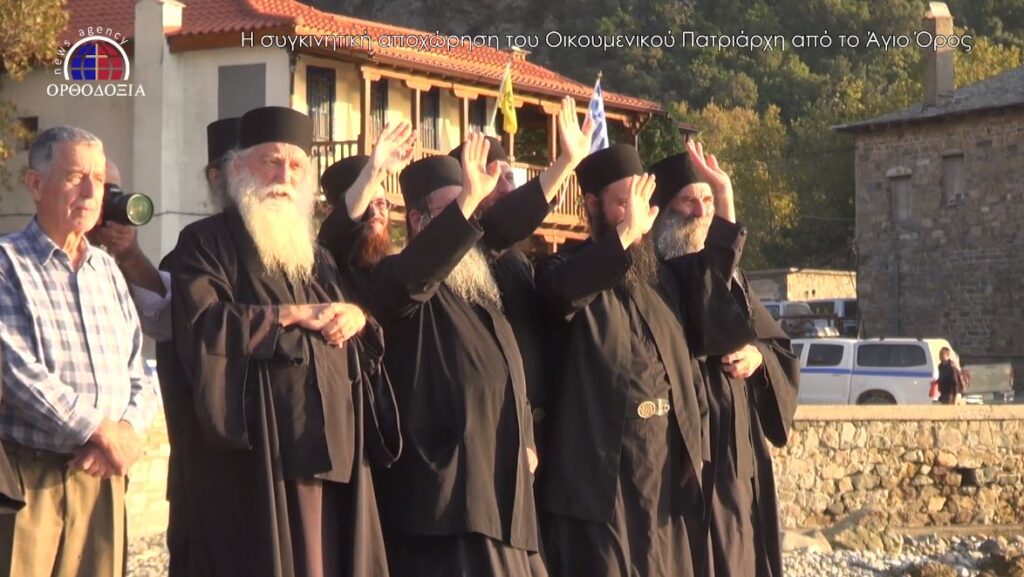 Κατευόδιον του Παναγιωτάτου Οικουμενικού Πατριάρχου, κ.κ. Βαρθολομαίου, υπό του Πρωτεπιστάτου, την Ιερά Επιστασία και τους αντιπροσώπους των Ιερών αγιορείτικων Μονών έλαβε χώρα, κατά την 22α Οκτωβρίου 2019, στις Καρυές του Αγίου Όρους.