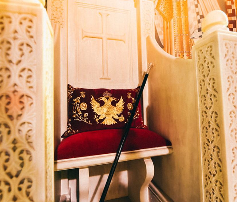 Στον αρχιερατικό Θρόνο, μόνη η ράβδος.