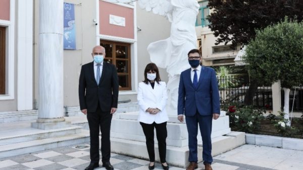 Στην Αλεξανδρούπολη βρίσκεται η Πρόεδρος της Δημοκρατίας Κατερίνα Σακελλαροπούλου για να παραστεί στις εορταστικές εκδηλώσεις για την επέτειο απελευθέρωσης της πόλης. Στις 6 το απόγευμα η κα. Σακελλαροπούλου επισκέφθηκε το Επισκοπείο, όπου συναντήθηκε με τον Μητροπολίτη Άνθιμο. Αμέσως μετά επισκέφθηκε το Νομαρχείο και συναντήθηκε με τον περιφερειάρχη Ανατολικής Μακεδονίας και Θράκης Χρήστο Μέτιο και τον αντιπεριφερειάρχη Έβρου Δημήτρη Πέτροβιτς. Στην αρχή της συνάντησης συζήτησαν σχετικά με το επενδυτικό ενδιαφέρον για το λιμάνι της Αλεξανδρούπολης, τονίζοντας πως αυτό θα δημιουργήσει ευκαιρίες και για την ευρύτερη περιοχή του Έβρου.