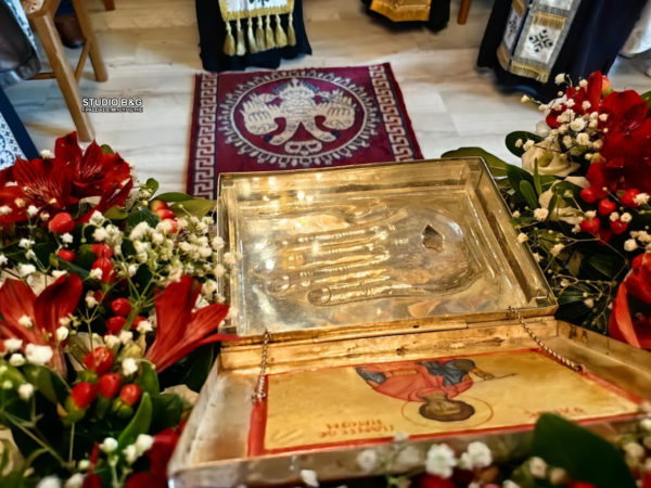 Τα ιερά λείψανα έφερε στο ναό ο πρωτοπρεσβύτερος π. Ανδρέας Βλαχιώτης από τις Μυκήνες και θα παραμείνουν στο ναό έως και την Τετάρτη 23 Απριλίου 2025. Ο εφημέριος του ναού π. Αριστείδης Αποστόλοπουλος ευχαρίστησε τους ιερείς, ψάλτες τις αρχές του τόπου και όλους τους πιστούς για την παρουσία τους.