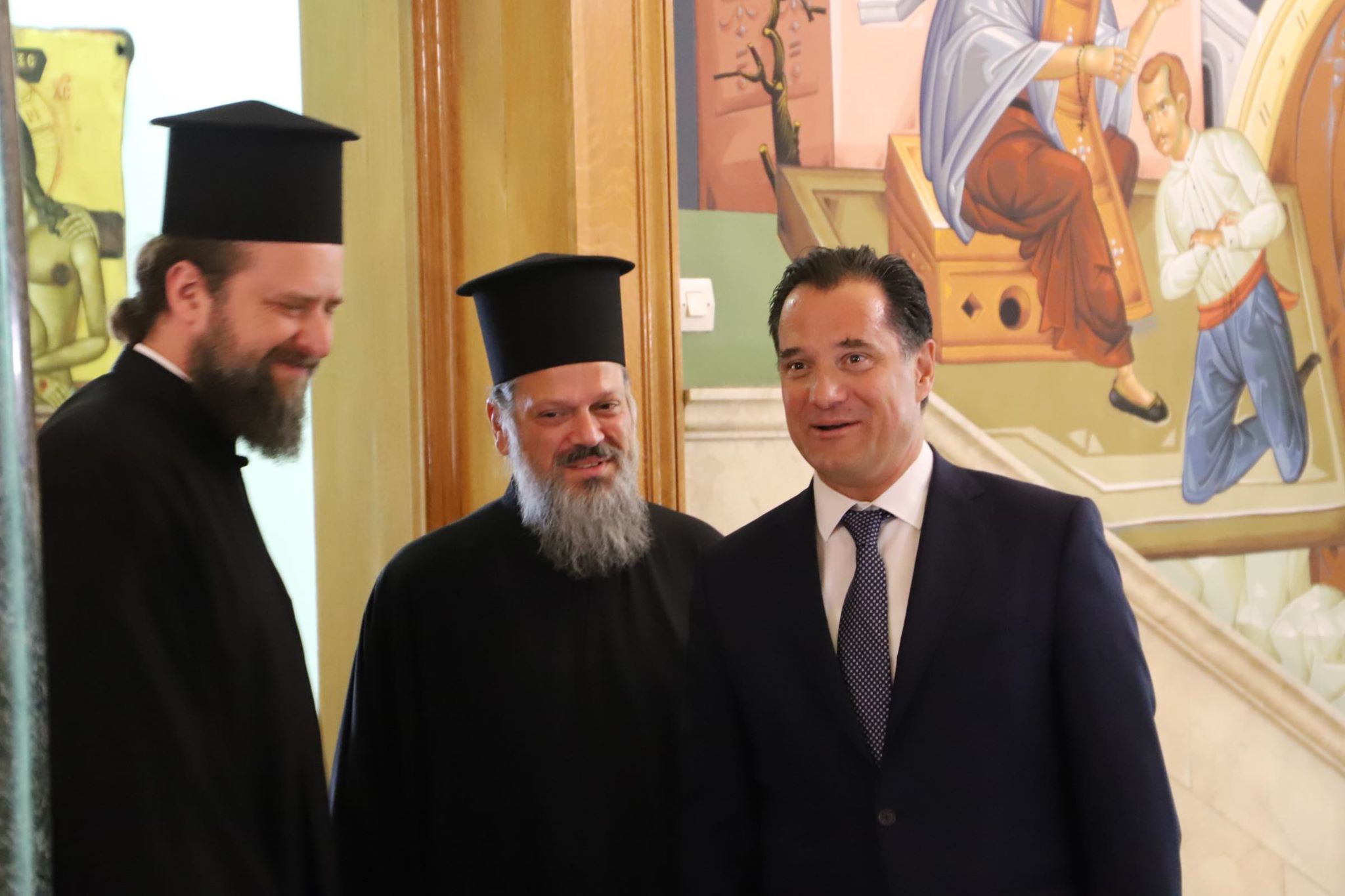 Ακριβώς στις 11.00 έφθασε στην Ιερά Αρχιεπισκοπή Αθηνών, ο Υπουργός Ανάπτυξης & Επενδύσεων, κ. Άδωνις Γεωργιάδης, όπου συναντήθηκε με τον Αρχιεπίσκοπο Αθηνών και Πάσης Ελλάδος, κ. Ιερώνυμο.
