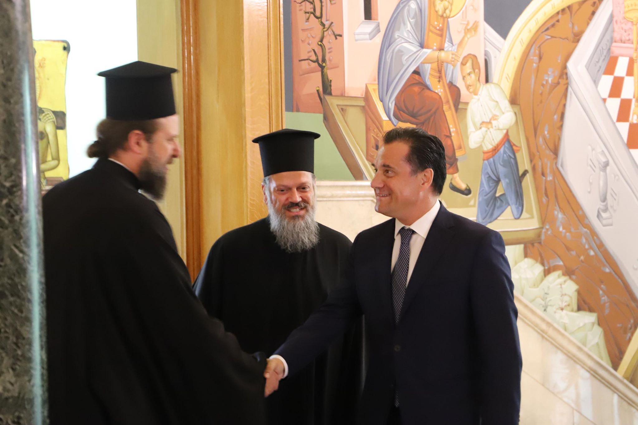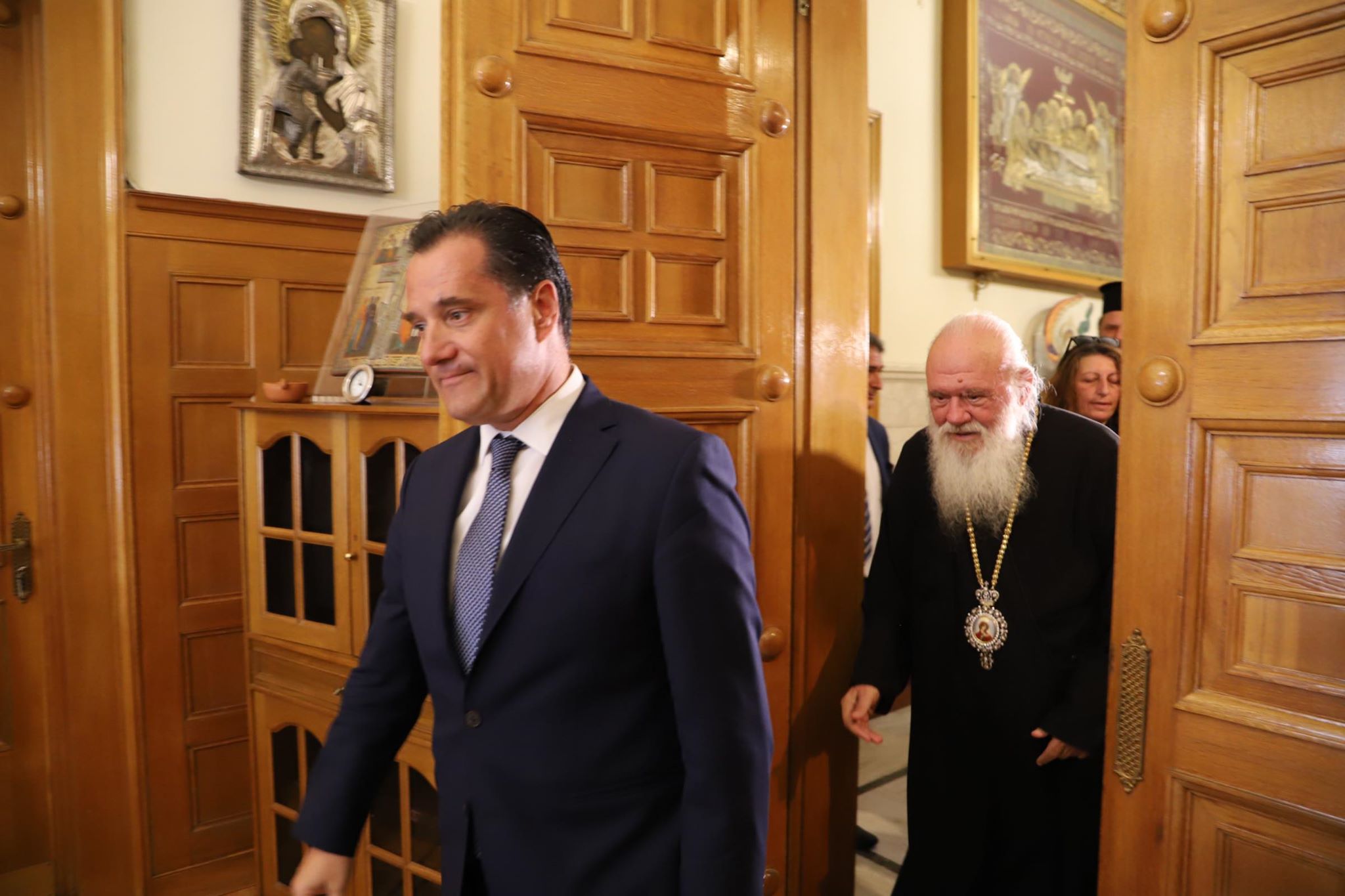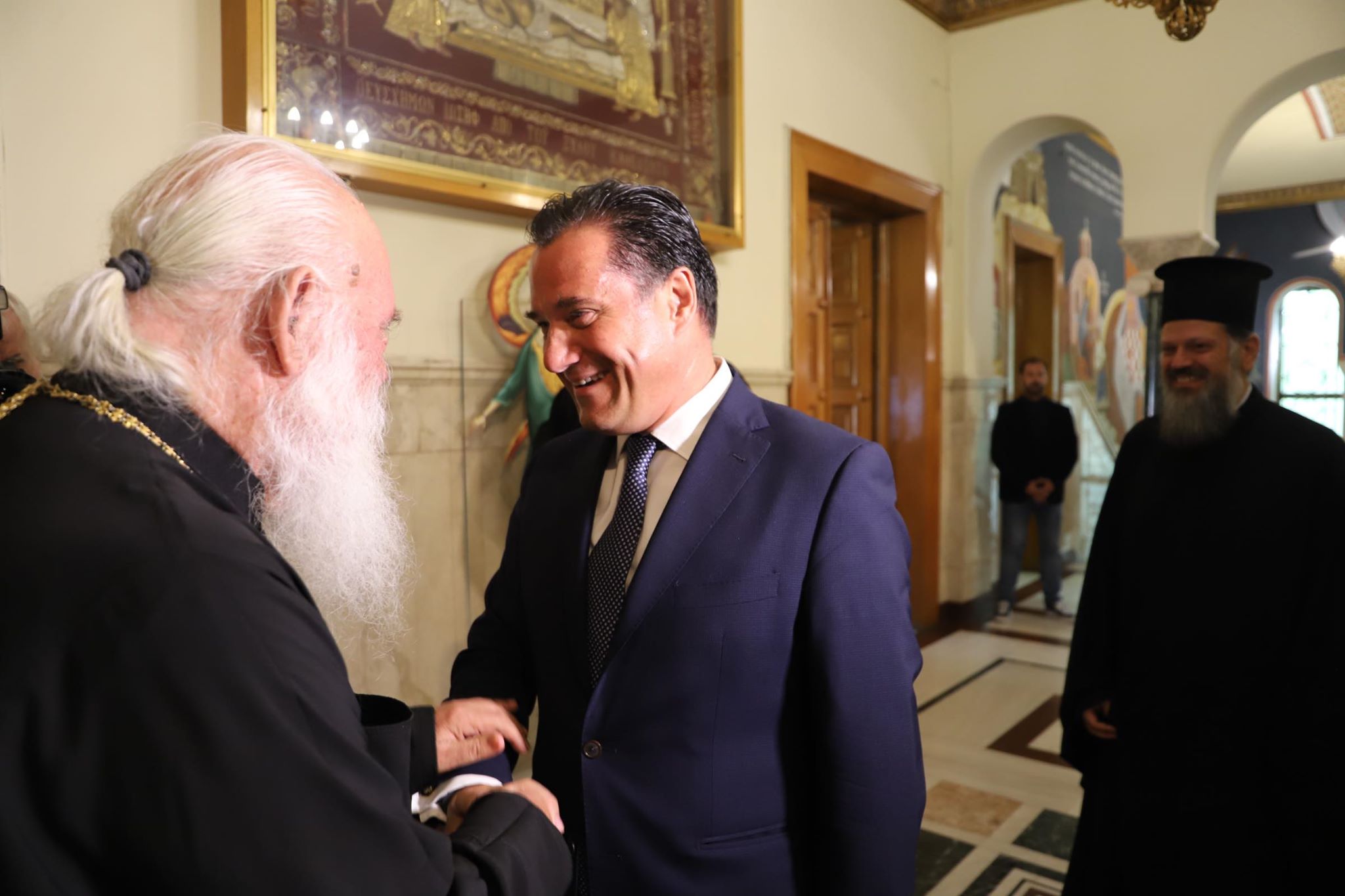 Ακριβώς στις 11.00 έφθασε στην Ιερά Αρχιεπισκοπή Αθηνών, ο Υπουργός Ανάπτυξης & Επενδύσεων, κ. Άδωνις Γεωργιάδης, όπου συναντήθηκε με τον Αρχιεπίσκοπο Αθηνών και Πάσης Ελλάδος, κ. Ιερώνυμο.