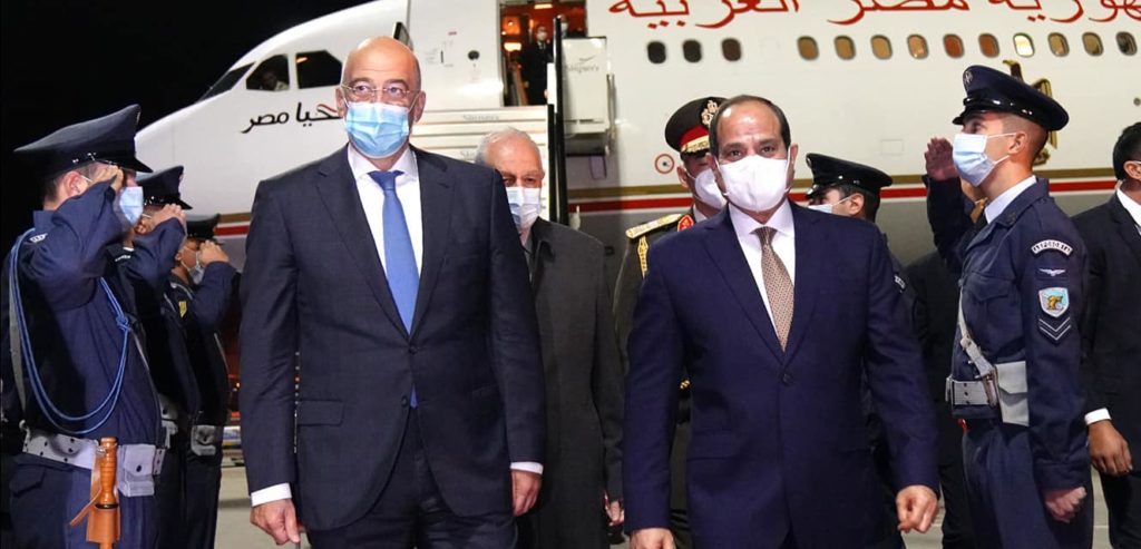 Τον Αιγύπτιο Πρόεδρο υποδέχθηκε το βράδυ της Τρίτης στο αεροδρόμιο Ελευθέριος Βενιζέλος ο υπουργός Εξωτερικών, Νίκος Δένδιας. «Υποδέχτηκα τον Αιγύπτιο Πρόεδρο Abdel Fattah el-Sisi. Μια επίσκεψη που σηματοδοτεί τους ισχυρούς δεσμούς και τη στενή συνεργασία μεταξύ Ελλάδας και Αιγύπτου» έγραψε αμέσως μετά την υποδοχή στον προσωπικό του λογαριασμό στο Twitter, ο Ν. Δένδιας.