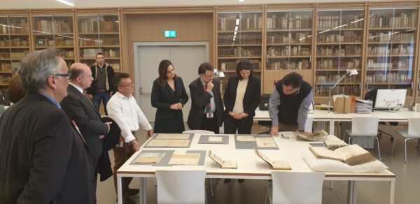 Στη συνέχεια, η κα Κεραμέως είχε την ευκαιρία να ξεναγηθεί στο Αναγνωστήριο Χειρογράφων, στο Εργαστήριο Συντήρησης, στα Θησαυροφυλάκια, στο Εργαστήριο Ψηφιοποίησης, Μικροφωτογράφισης και Φωτογραφίας, αλλά και να επισκεφθεί το κλειστό κυλιόμενο βιβλιοστάσιο, το Τμήμα Γενικής Συλλογής, το Τμήμα Δανειστικής Συλλογής όπως και τα Ανοιχτά Αναγνωστήρια.