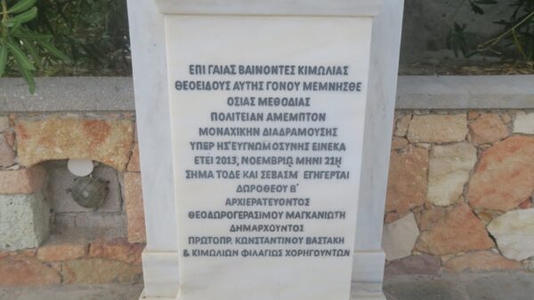 Ο Σεβασμιώτατος κ. Δωρόθεος Β’ , ο οποίος επεσκέφθη την Κίμωλο, χοροστάτησε κατά τον Εόρτιο Εσπερινό, επί τη ιερά μνήμη της Οσίας Μεθοδίας, της εν Κιμώλω ασκητικώς διαλαμψάσης, στον Ιερό Μητροπολιτικό Ναό της Παναγίας Οδηγητρίας, στον οποίο φυλάσσεται και η περίτεχνος επάργυρη Λάρνακα με τα τίμια Λείψανα της Οσίας, δωρεά του αοιδίμου Κιμωλίου Πλοιοκτήτη, Καπετάν-Κωνσταντίνου Βεντούρη.