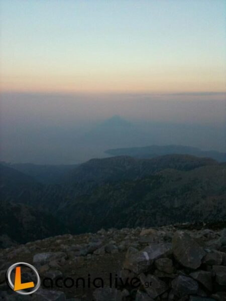 Λίγο πριν ανατείλει ο ήλιος, σχηματίζεται μέσα στο Μεσσηνιακό κόλπο, στον ορίζοντα της δυτικής Μεσσηνίας, η τέλεια ισόπλευρη τριγωνική σκιά της πυραμιδοειδούς κορυφής του Ταϋγέτου. Αντίστοιχα, μαγευτικό είναι και το ηλιοβασίλεμα στην κορυφή, όταν η σκιά σε σχήμα πυραμίδας απλώνεται προς την πλευρά του λακωνικού κάμπου και το κοκκινωπό φως σχηματίζει μια τέλεια ευθεία γραμμή, που εφάπτεται στην κορυφή της πυραμίδας. Η ορατότητα, όταν ο καιρός το επιτρέπει, φθάνει μέχρι την Κρήτη.