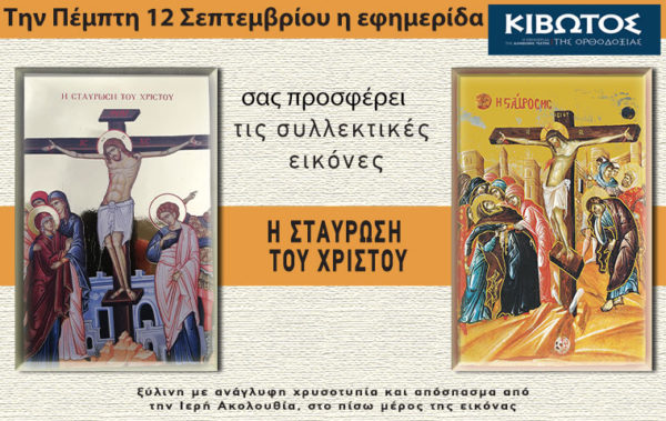 Την Πέμπτη 12 Σεπτεμβρίου η εφημερίδα «Κιβωτός της Ορθοδοξίας» εν όψει της μεγάλης εορτής της Υψώσεως του Τιμίου Σταυρού σας προσφέρει δυο συλλεκτικές εικόνες για να επιλέξετε