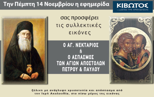 Την Πέμπτη 14 Νοεμβρίου η εφημερίδα Κιβωτός της Ορθοδοξίας κατόπιν μεγάλης ζήτησης επανακυκλοφορεί δυο συλλεκτικές εικόνες για να επιλέξετε