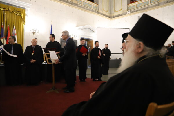 Απηύθυναν επίσης χαιρετισμούς, η κ. Ισμήνη Α. Κριάρη, Πρύτανης του Παντείου Πανεπιστημίου- Καθηγήτρια Συνταγματικού Δικαίου, ο κ. Κωνσταντίνος Γουλιάμος, Πρύτανης του Ευρωπαϊκού Πανεπιστημίου Κύπρου, ο κ. Αχιλλέας Χαλδαιάκης Καθηγητής Βυζαντινής Μουσικολογίας- Κοσμήτορας της Φιλοσοφικής Σχολής ΕΚΠΑ.
