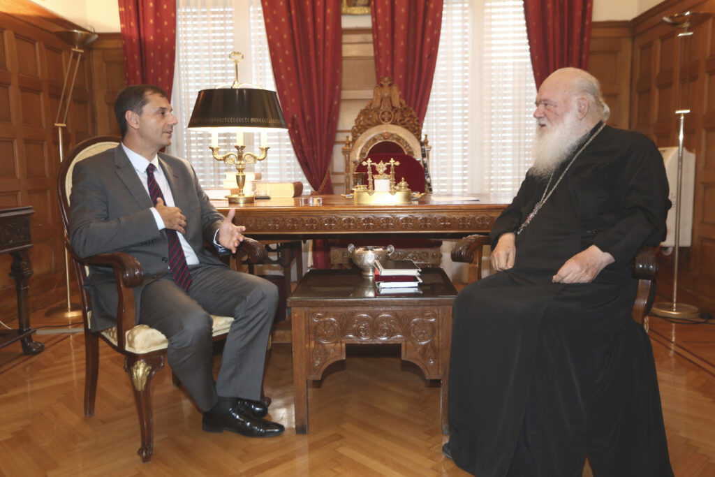 Με τον Υπουργό Τουρισμό κ. Χάρη Θεοχάρη συναντήθηκε σήμερα το απόγευμα ο Αρχιεπίσκοπος Αθηνών και Πάσης Ελλάδος κ.κ. Ιερώνυμος.