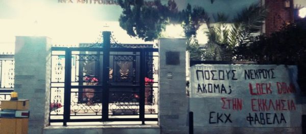 Την ίδια ώρα έντονο προβληματισμό προκαλεί η επίθεση αναρχικών στα γραφεία της Ιεράς Μητροπόλεως Πειραιώς. Συγκεκριμένα το βράδυ της Πέμπτης αριστεριστές τοποθέτησαν ένα πανό, με το οποίο ζητούσαν να επιβληθεί lockdown στην Εκκλησία.