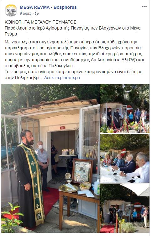 Παράκληση στο Ιερό Αγίασμα της Παναγίας των Βλαχερνών πραγματοποιήθηκε χθες 2 Ιουλίου, παρουσία ενοριτών και πλήθους επισκεπτών, όπως γράφει στο Facebook η Αδελφότητα Κωνσταντινουπολιτών Μεγάλου Ρεύματος ο «Ο ΤΑΞΙΑΡΧΗΣ». Παρόντες ήταν επίσης, ο αντιδήμαρχος Διπλοκιονίου κ. Αλί Ριζά και ο σύμβουλος αυτού κ. Παλάκογλου.