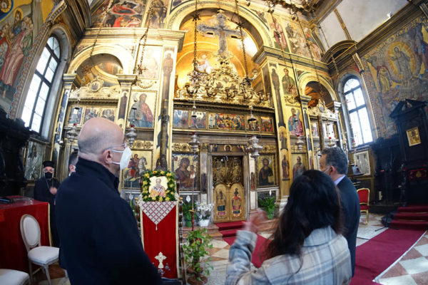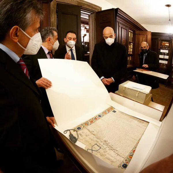 Το Ινστιτούτο Βυζαντινών και Μεταβυζαντινών Σπουδών της Βενετίας και τον Ιερό Ναό του Αγίου Γεωργίου των Ελλήνων επισκέφθηκε σήμερα ο υπουργός Εξωτερικών, Νίκος Δένδιας.