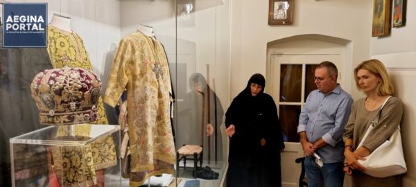 Το κελλάκι του Αγίου Νεκταρίου, που βρίσκεται στο μοναστήρι της Αγίας Τριάδος, επισκέφθηκαν χθες η σκηνοθέτης της ταινίας “Ο Άνθρωπος του Θεού” Γελένα Πόποβιτς, ο παραγωγός Αλέξανδρος Πότερ, ο Δήμαρχος Αίγινας Γιάννης Ζορμπάς και ο Πρόεδρος της “Επιτροπής 2021″ του Δήμου Αίγινας, δημοσιογράφος Μανώλης Κοττάκης. Η ηγουμένη της μονής μοναχή Τιμοθέη τους παρουσίασε τον ανακαινισμένο χώρο του δωματίου του Αγίου Νεκταρίου, όπου έχουν τοποθετηθεί σε ειδικές προθήκες, προσωπικά αντικείμενα του Αγίου. ” Δεν είναι να τα κρύβουμε και να τα έχουμε μόνο για μας” είπε η ηγουμένη Τιμοθέη, αλλά “για να τα βλέπει και ο κόσμος και να παρηγορείται και να παίρνει δύναμη, γιατί είναι ευλογία”.