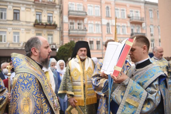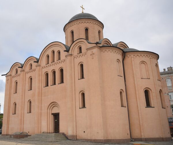 Ο ιστορικός Ιερός Ναός όπου ετελέσθη η Θεία Λειτουργία αρχικά χτίστηκε το 1130 μ.Χ. από τον Μυστισλάβο Α’ τον Μέγα και υπήρξε Μητροπολιτικός Ναός της Μητροπόλεως Κιέβου στις αρχές του 17ου αιώνος. Το 1613 η εκκλησία υπέστη αλλαγές αναγεννησιακού ρυθμού και αργότερα τον 18ο και 19ο αι. ανακαινίσθηκε σε ύφος Νεοκλασικού Μπαρόκ. Το 1935 η Σοβιετική Ένωση κατέστρεψε ολοσχερώς τον Ι. Ναό. Το 1998 ξαναχτίστηκε σύμφωνα με τα αρχιτεκτονικά σχέδια του πρώτου Ναού του 1130 μ.Χ.