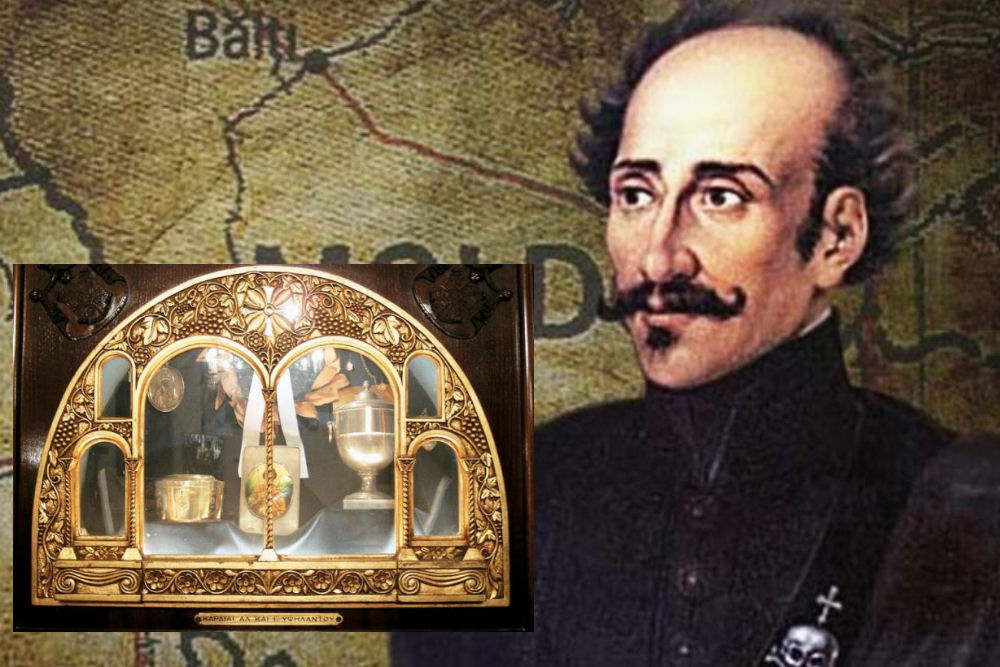 Μέσα σε ειδική προθήκη που βρίσκεται αριστερά του δεσποτικού θρόνου και σε υψηλό σημείο, βρίσκονται δύο λήκυθοι. Στον επάργυρο βρίσκεται η καρδιά του μεγάλου ηγέτη της Φιλικής Eταιρείας και αρχηγού της Eλληνικής Eπανάστασης στις παραδουνάβιες ηγεμονίες Aλέξανδρου Yψηλάντη και στον επίχρυσο η καρδιά του αδελφού του Γεωργίου.
