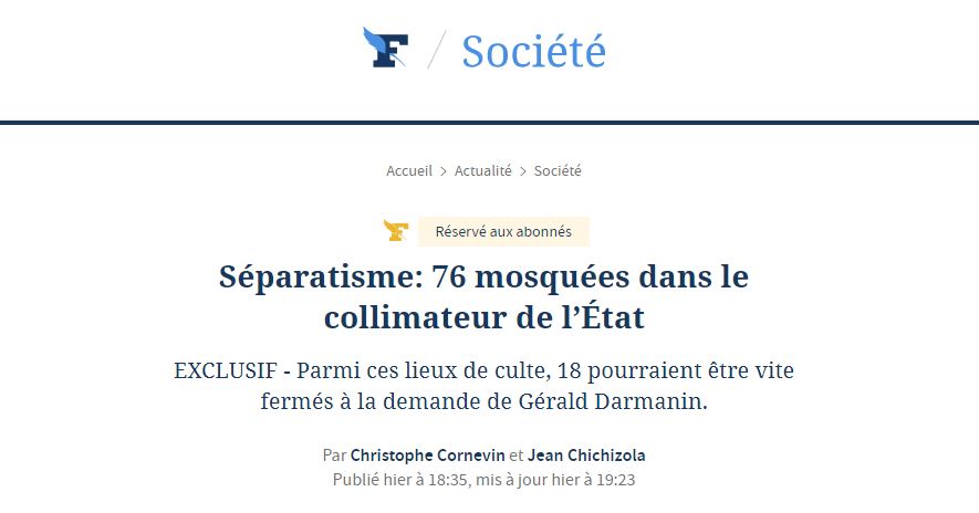 👉 76 mosquées soupçonnées de séparatisme vont être contrôlées dans les prochains jours et celles qui devront être fermées le seront.https://t.co/0R3RQ2zFoi— Gérald DARMANIN (@GDarmanin) December 2, 2020