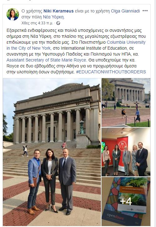 Επίσκεψη Υπουργού Παιδείας Ν. Κεραμέως @nkerameus: ενημέρωση για θέματα ελληνικής εκπαίδευσης στις ΗΠΑ & επαφές για προώθηση προγραμμάτων ανταλλαγών φοιτητών μεταξύ #Ελλάδας & #Αμερικής pic.twitter.com/2SSmChWYOp