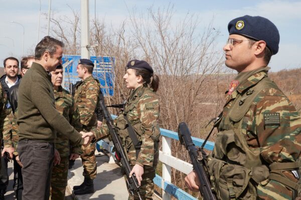 Νωρίτερα, ο κ. Μητσοτάκης επισκέφθηκε το ακριτικό στρατιωτικό φυλάκιο στη γέφυρα των Κήπων του Έβρου