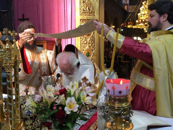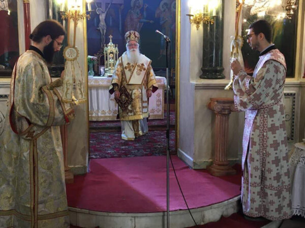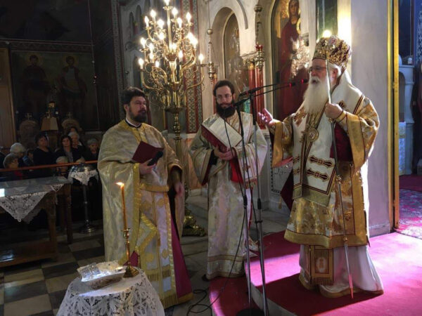 Πριν το τέλος της Θείας Λειτουργίας, ο προιστάμενος και εφημέριος του Ναού Πανοσιολογιώτατος Αρχιμανδρίτης π. Χριστόδουλος Κατσαντωνόπουλος καλωσόρισε τον φιλοξενούμενο Αρχιερέα λέγοντας μεταξύ άλλων και τα εξής: