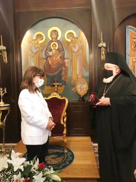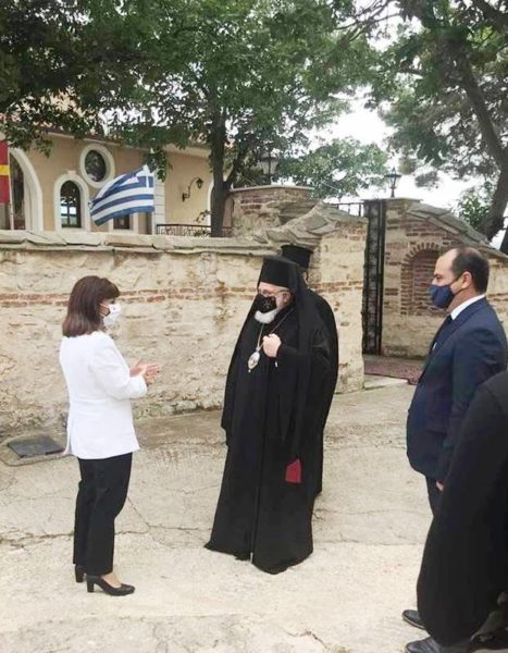 Την Πρόεδρο της Δημοκρατίας κα Κατερίνα Σακελλαροπούλου υποδέχθηκε στο Επισκοπείο Διδυμοτείχου ο Σεβασμιώτατος Μητροπολίτης Διδυμοτείχου, Ορεστιάδος και Σουφλίου κ. Δαμασκηνός τις μεσημβρινές ώρες του Σαββάτου, 15 Μαΐου.