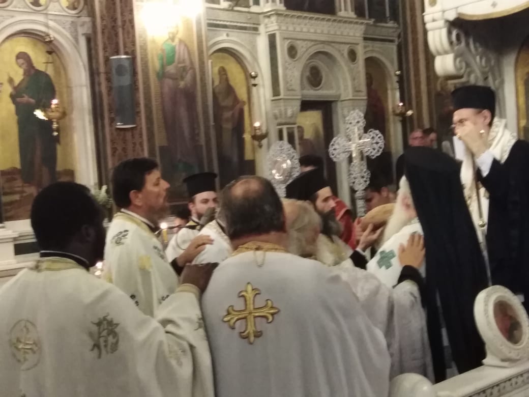 Του πανηγυρικού εσπερινού χοροστάτησε ο Άγιος Θαυμακού κ.κ. Ιάκωβος, συνεπικουρού-μενος από τον σεπτό Πρωτοσύγκελο της Αρχιεπισκοπής Αθηνών Αρχιμανδρίτη κ.κ. Βαρνάβα Θεοχάρη, τον αρχιερέα του ναού, Αρχιμανδρίτη κ.κ. Άνθιμο Ηλιόπουλο, τους άλλους ιερείς του, Πατέρες Νιράκη Εμμανουήλ και Στάμο Χαράλαμπο και άλλους ακόμα ιερείς της Αρχιεπισκοπής Αθηνών. Με το πέρας του Εσπερινού, τον λόγο έλαβε ο σεπτός Επίσκοπος κ.κ. Ιάκωβος και αφού διεμήνυσε το παναθρώπινο μήνυμα αγάπης για την Τιμία Ζώνη της Παναγίας, του αρχιεπισκόπου Αθηνών και πάσης Ελλάδος κ.κ. Ιερωνύμου, τόνισε εμφατικά Imageτην μοναδική ευκαιρία που μας δίνει η εορτή της χαριτόβρυτης ζώνης της Παναγίας, για να αναβαπτιστούμε ηθικά και να ενωτιστούμε το ευλαβές μήνυμα της Παναγίας, που ανυψώνει ηθικά τον άνθρωπο και τον θωρακίζει απέναντι στα ευτελή μηνύματα της παθογενούς εποχής μας. Στην αντιφώνηση του, ο ευλαβής αρχιερέας της εκκλησίας Αρχιμανδρίτης κ-ος Άνθιμος Ηλιόπουλος, ευχαρίστησε τους πιστούς για την συγκινητική παρουσία τους στην εορταστική διήμερη πανήγυρη, που αναδεικνύει την αξεδιάλυτα δεμένη σχέση στο χρόνο, των Ελλήνων με την Παναγία, τους ευγενείς εθελοντές, το ενοριακό συμβούλιο και τις ακαταπόνητες κυρίες του φιλοπτώχου ταμείου, για την φροντίδα τους στον καλλωπισμό του ναού και την εν γένει συμβολή τους στην αρτιότητα της πανηγύρεως.