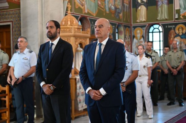Στην τελετή απόδοσης τιμής στα στελέχη των Ενόπλων Δυνάμεων που έχασαν τη ζωή τους στην αποστολή ανθρωπιστικής βοήθειας στη Λιβύη, κατά την έπαρση της σημαίας στο στρατόπεδο «Παπάγου», με την ολοκλήρωση του τριήμερου πένθους των Ενόπλων Δυνάμεων, παρέστη σήμερα ο Υπουργός Εθνικής Άμυνας Νίκος Δένδιας.