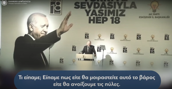 «Τι είπαμε; Είπαμε πως είτε θα μοιραστείτε αυτό το βάρος, είτε θα ανοίξουμε τις πύλες», είναι η δήλωση του Ερντογάν και ακολουθεί ο Πρωθυπουργός: