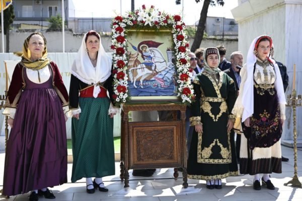 H τελετή εορτασμού του Μεγαλομάρτυρα Αγίου Γεωργίου, Προστάτη του Στρατού Ξηράς, πραγματοποιήθηκε την Κυριακή 23 Απριλίου 2023 στην έδρα της Σχολής Πεζικού, στη Χαλκίδα, παρουσία του Υφυπουργού Εθνικής Άμυνας κ. Νικολάου Χαρδαλιά, ως εκπροσώπου του Πρόεδρου της Ελληνικής Κυβέρνησης και του Αρχηγού ΓΕΕΘΑ Στρατηγού Κωνσταντίνου Φλώρου.