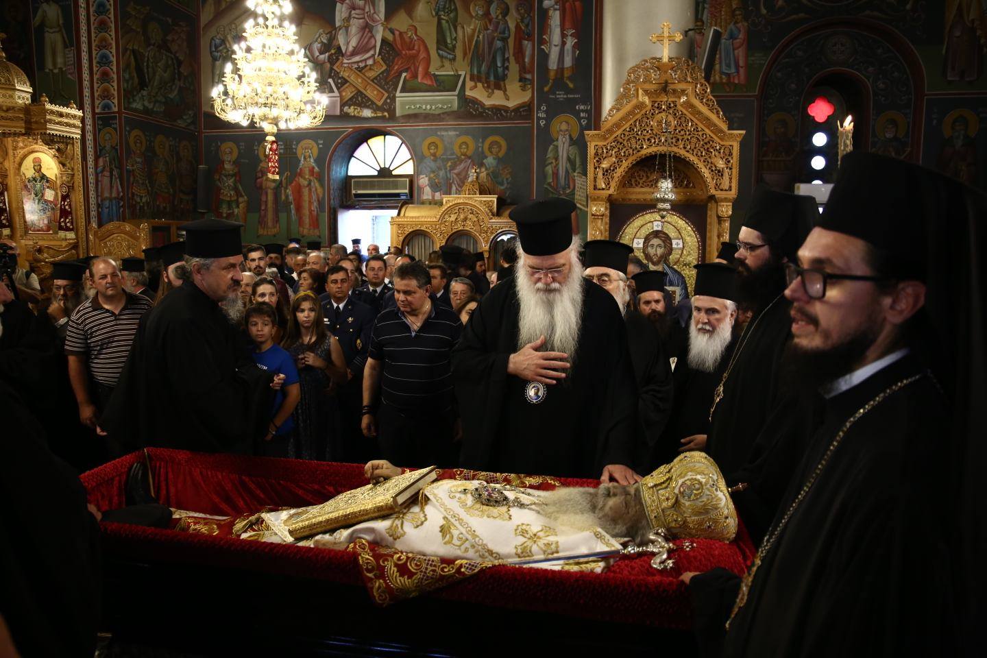 Συγκινητικές στιγμές εκτυλίσσονται από το πρωί στον Μητροπολιτικό Ναό του Ευαγγελισμού της Θεοτόκου στη Λαμία. Πλήθος κόσμου και Ιεραρχών της Εκκλησίας της Ελλάδος έχουν προσέλθει στον Ιερό Ναό για την τέλεση της εξοδίου ακολουθίας.