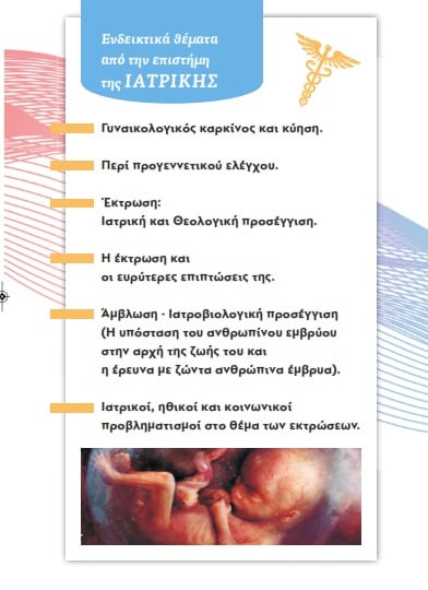 Παρουσιάζεται η ιατρική διάσταση της εμβρυϊκής ζωής καθώς και της πρακτικής των αμβλώσεων με τρόπο εύληπτο για τον αναγνώστη.